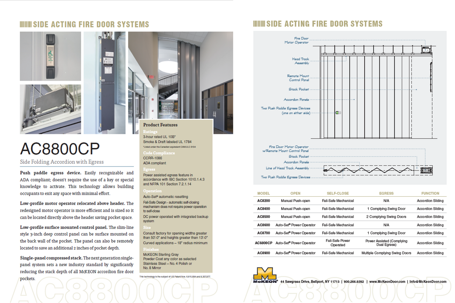 - Model AC8800CP - Side Folding Fire Door System with Push Paddle Egress